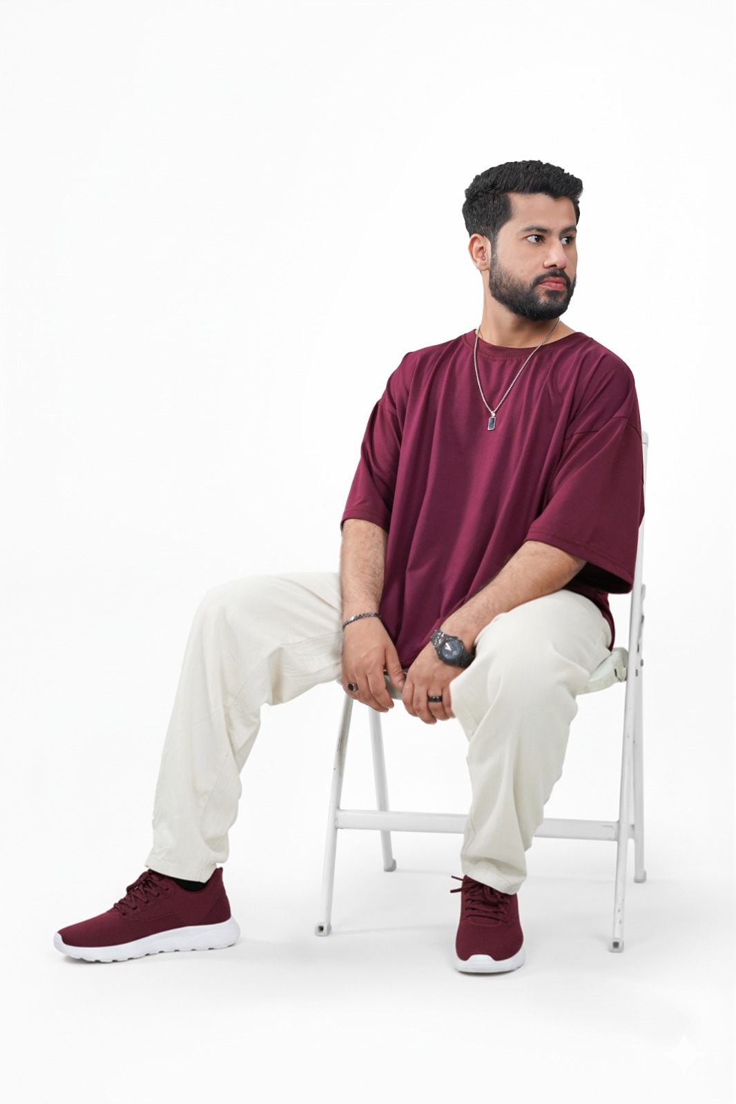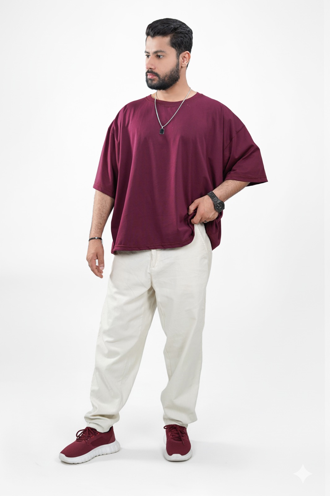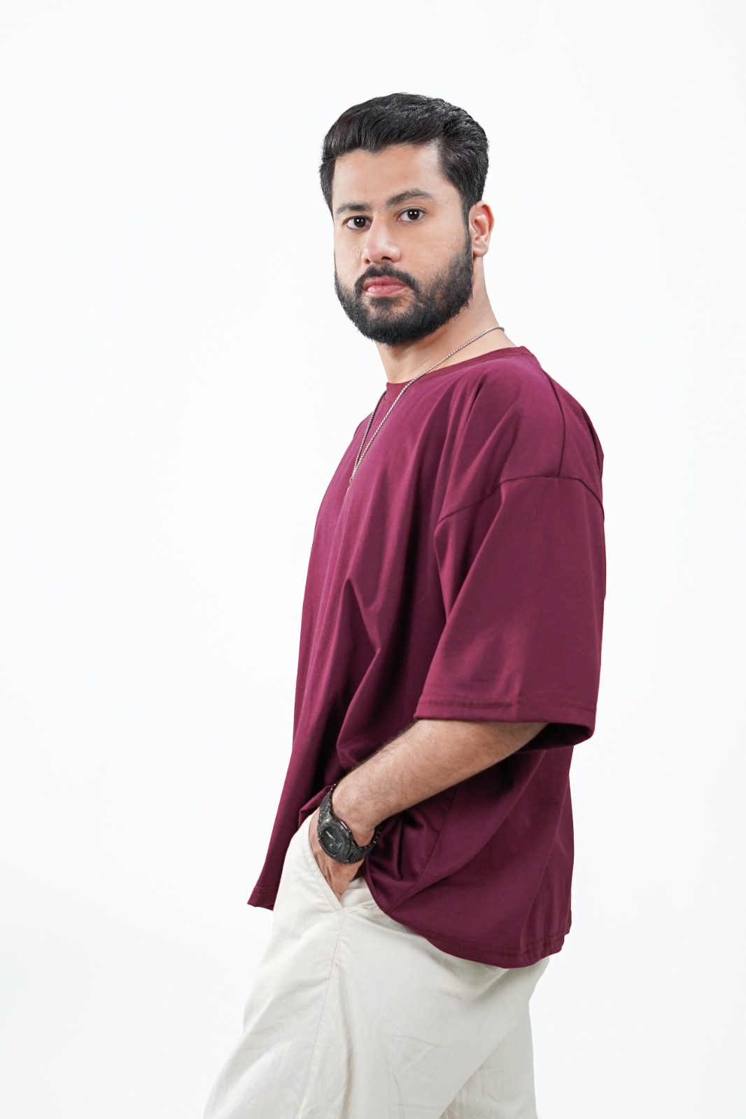 Crafted from premium jersey fabric, this maroon oversized tee delivers a street fit silhouette with a soft, smooth texture for all-day comfort. Designed for a clean, modern streetwear look, it’s perfect for those who value both style and ease in everyday wear.